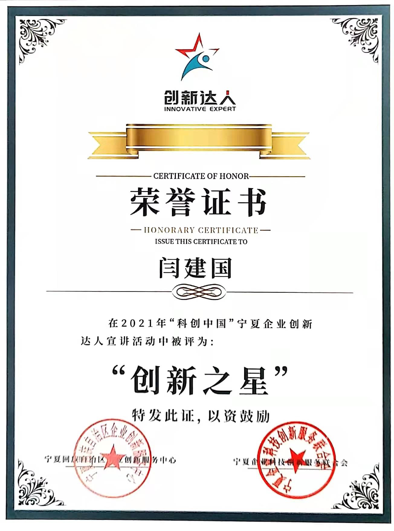 2022年12月被评为银川市科技创新领军人才