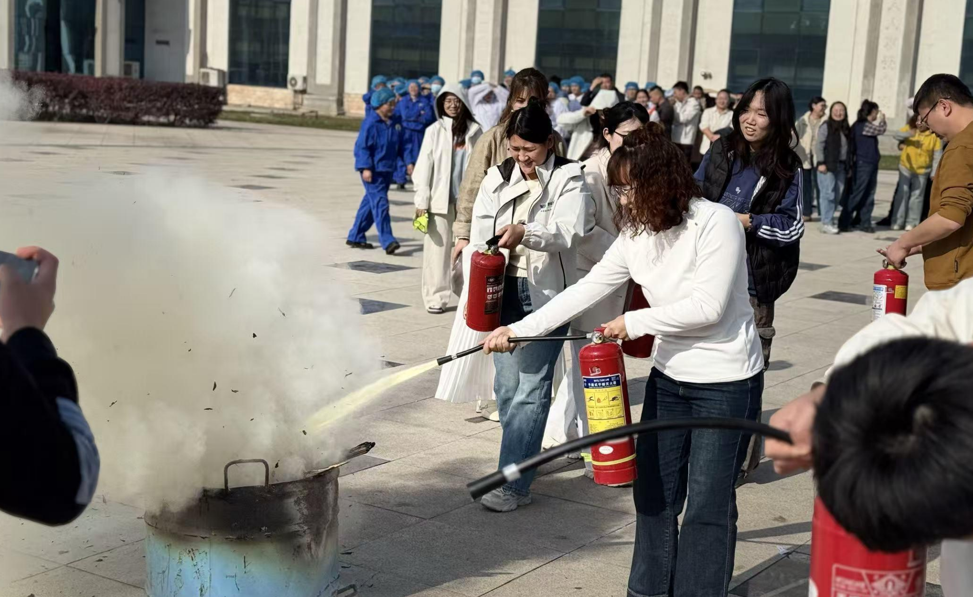 在安环部专业的指导下,员工分批次进行了灭火器实操演练,通过"提、拔、握、压"的实战操作,切实掌握了消防器材的使用技能。